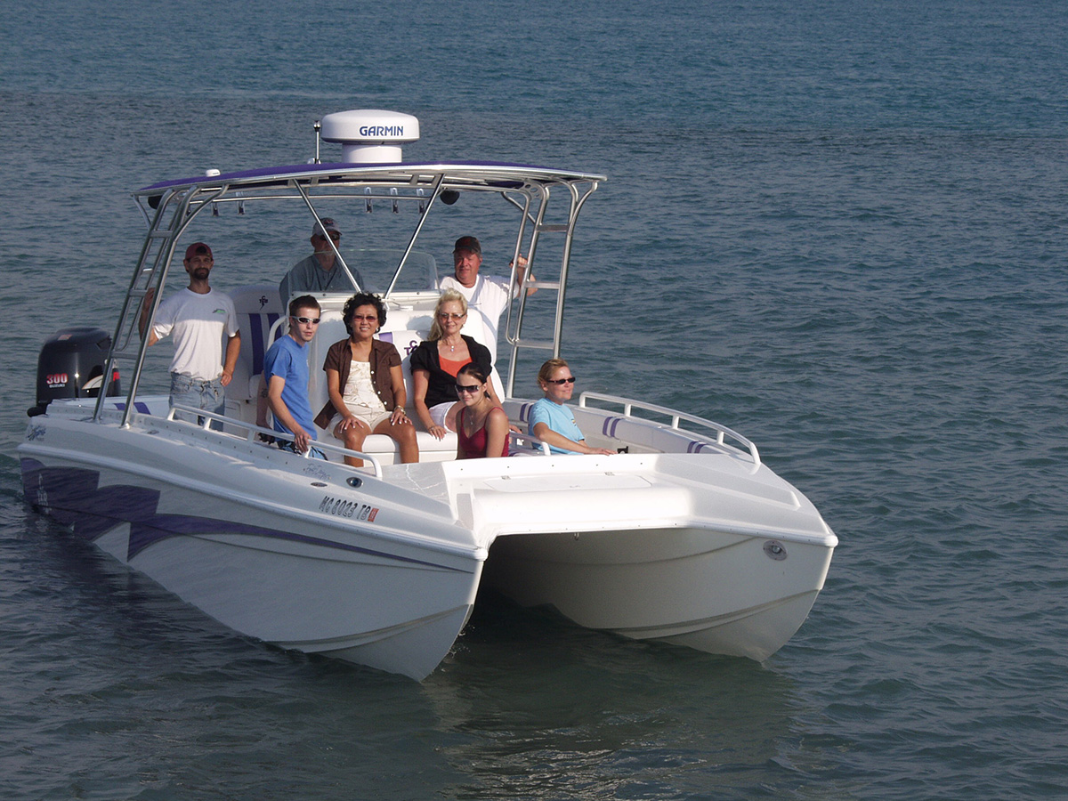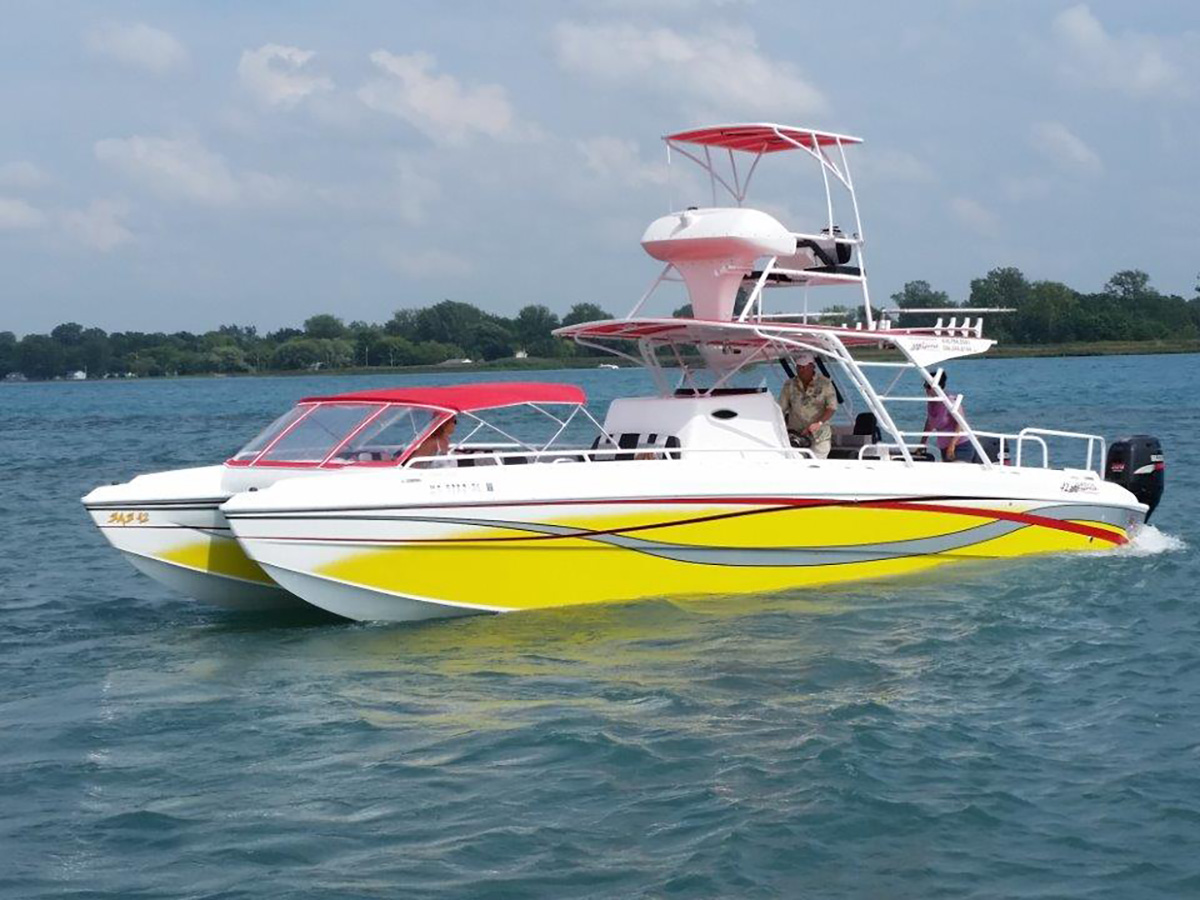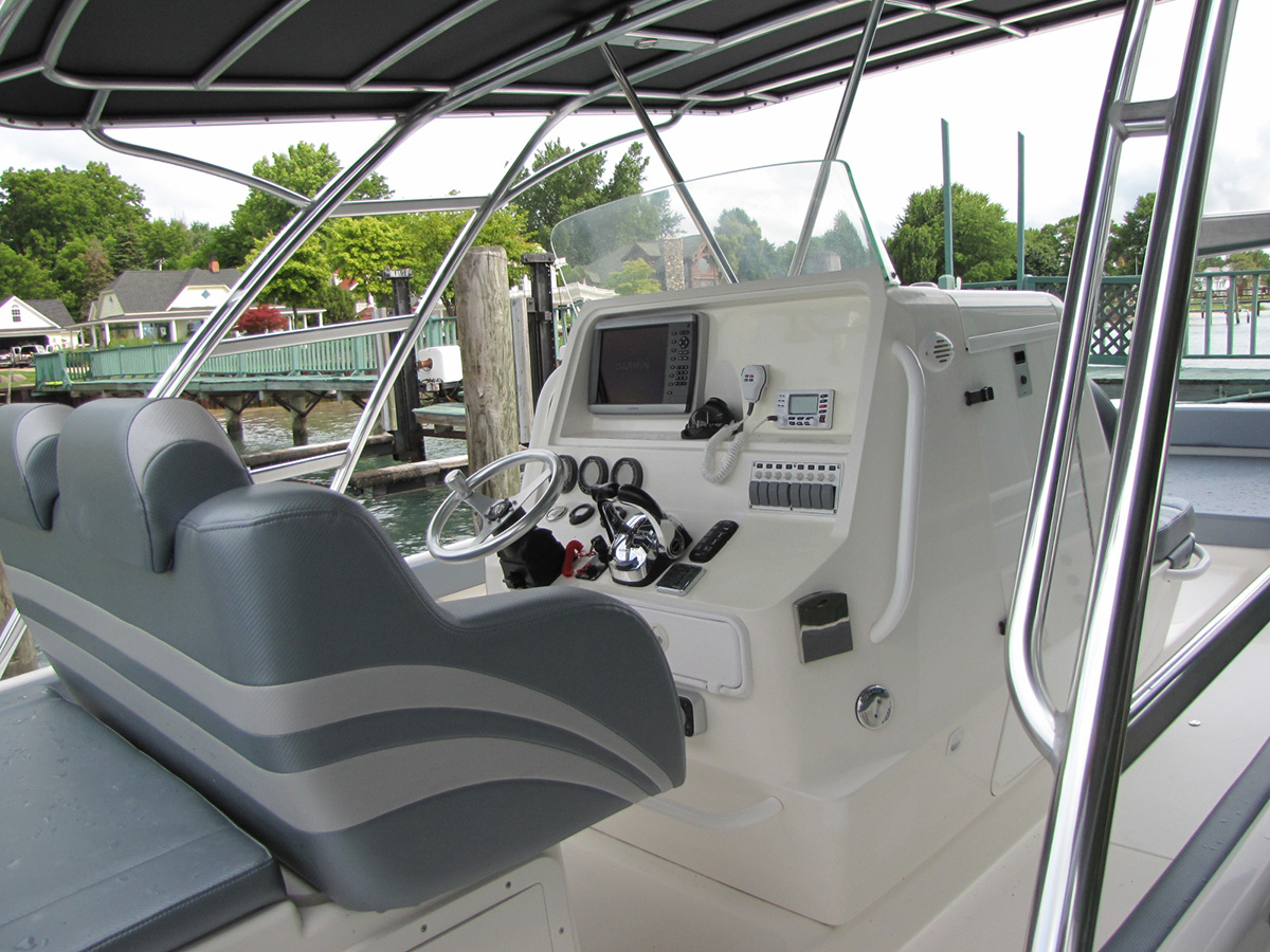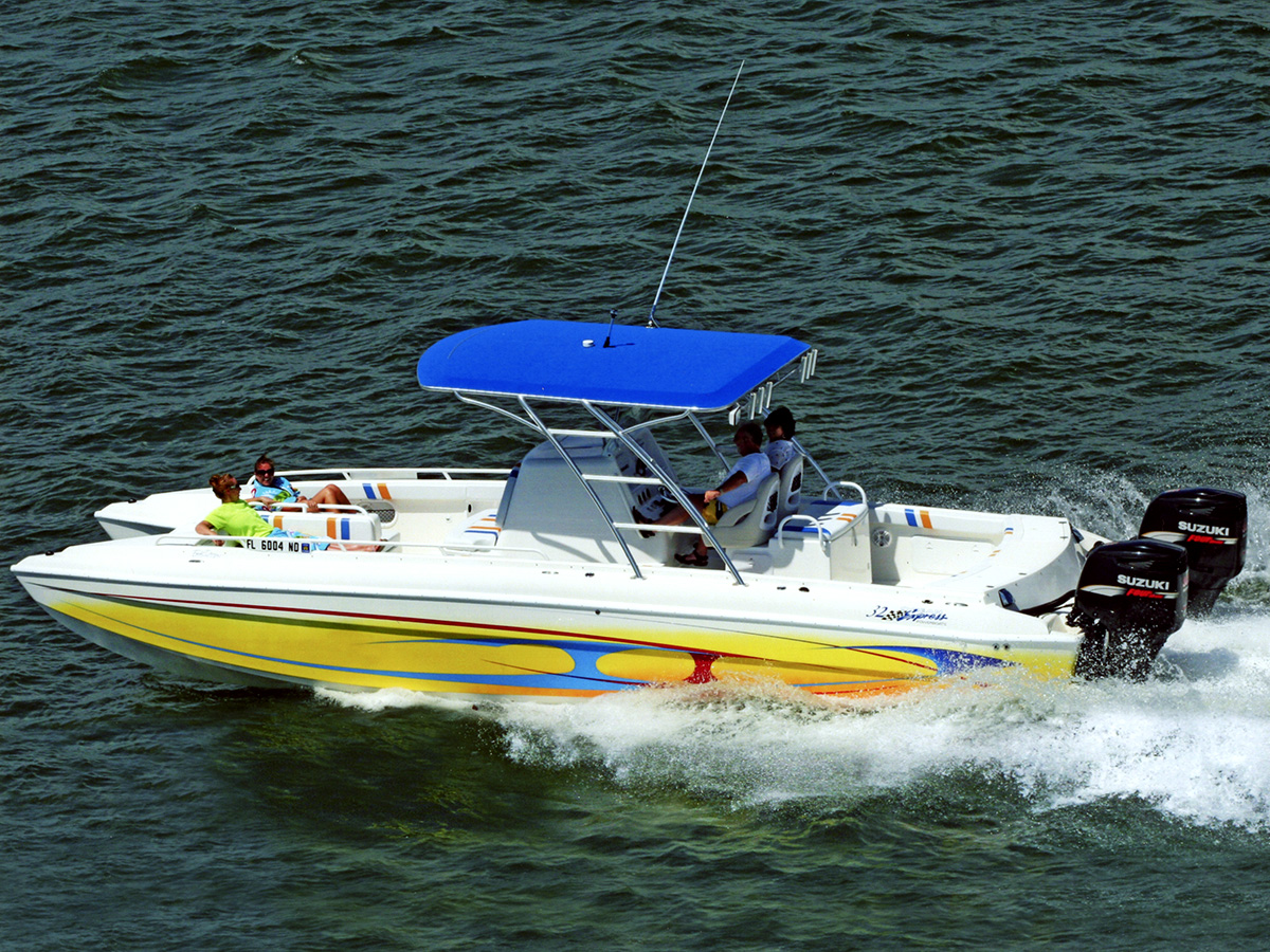 Our 32′ Center Console significantly steps up the deck space and power from its’ smaller siblings. Coming in at about 32.5′ with a beam of 10’ 6”, this model is perfectly suited for day cruising, fishing and water sports enthusiasts.