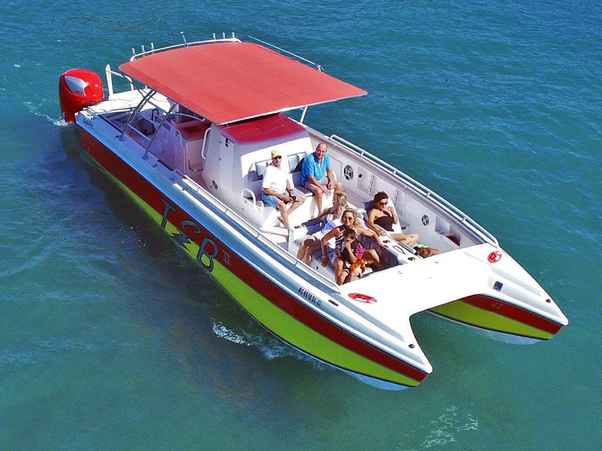 The 42′ Center Console model steps up the game considerably. At 42” LOA and a beam of 12’ she has expansive seating in the bow, and a large open rear deck space along with plenty of power is perfectly suited to get you where you are going fast.